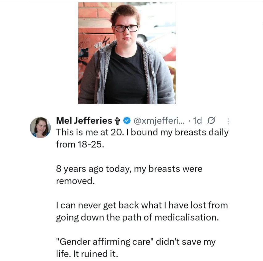 Mel Jefferies, a woman who transitioned to a man has revealed that it “ruined” her life.