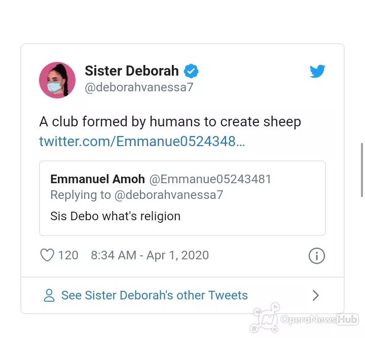 Beautiful Sister Deborah whom is a top famous Musician in Ghana also doesn’t believe in religion not to even talk about Christianity. She once made a write-up on her twitter account and said that religion was formed by humans to create them into sheep.