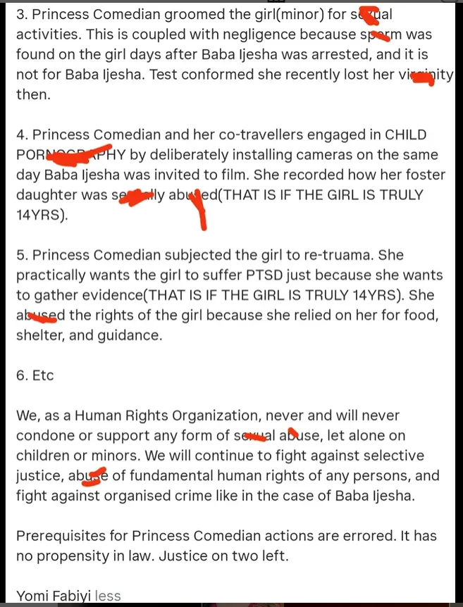 Fabiyi also accused some parties of procedural misconduct and claimed the girl suffered negligence during the evidence-gathering process.